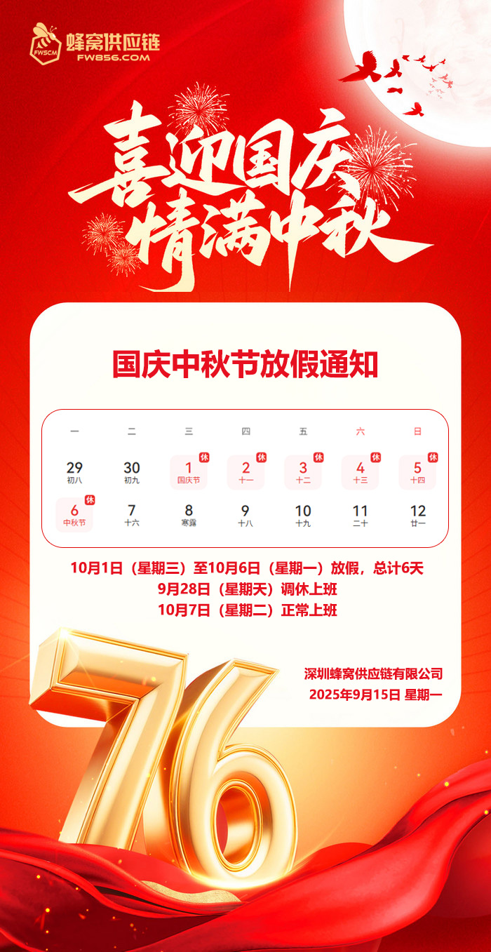 国庆&中秋佳节将至,根据《国务院办公厅关于2025年部分节假日安排通知》,结合我司实际情况,现将2025年国庆&中秋佳节放假通知安排如下: